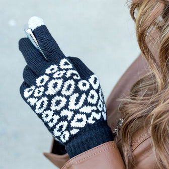 Our leopard print touch gloves have a fuzzy lining for warmth and touch pads on thumb and index finger to keep you connected!