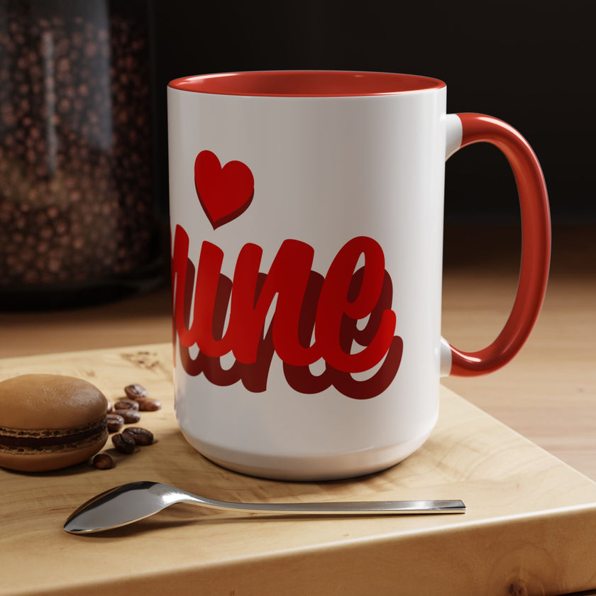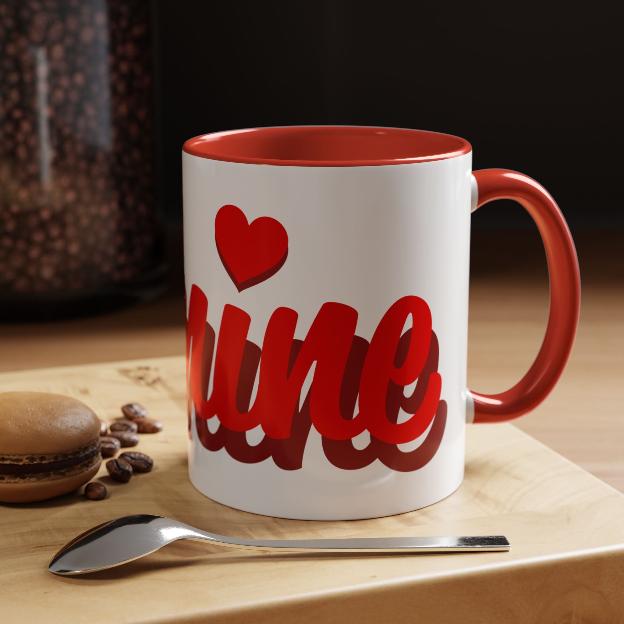 Warmth in your hands and a little love in your morning routine. This ceramic mug pairs a glossy white exterior with a bold red interior and handle, letting the playful script and tiny heart pop from every angle. It feels at home on a cluttered desk during late-night grading, on a kitchen counter during slow weekend breakfasts, or tucked into a care package for someone you miss.